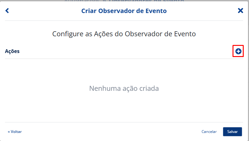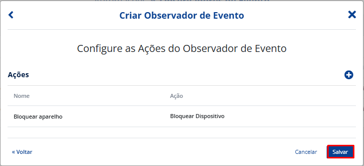 Ao final, clique em “Salvar” para concluir o observador de eventos.