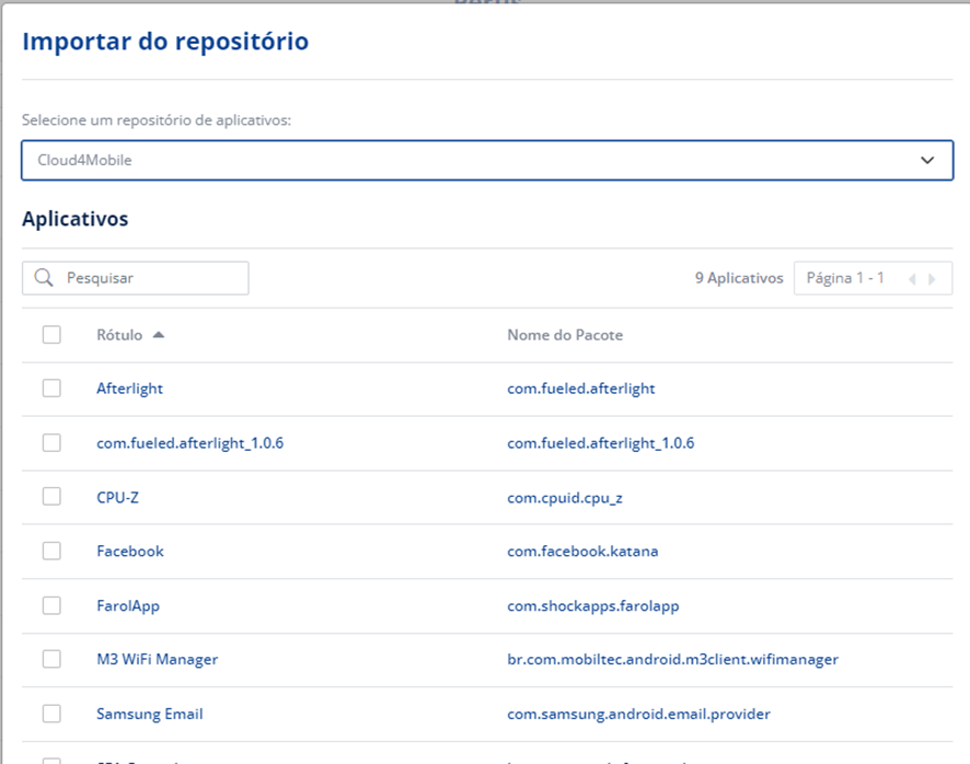 Permite acrescentar aplicativos que estão instalados num dispositivo já registrado no cloud4mobile.