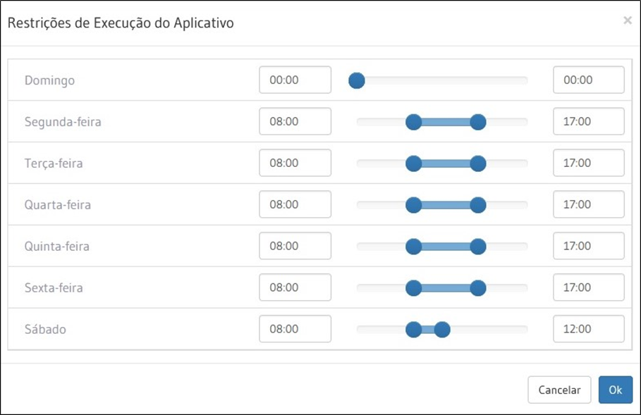 Permite estabelecer a faixa de horário em que o aplicativo poderá ser utilizado.