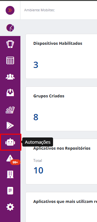 Na tela inicial do C4M, vá ao menu “Automações” conforme mostrado na imagem abaixo.