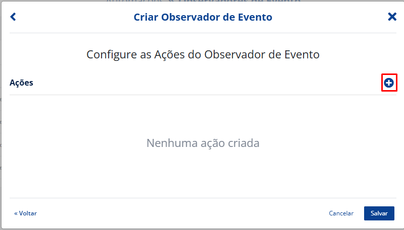 Na tela seguinte, você deve estabelecer o que irá ser feito quando o evento configurado acontecer. Clique no botão de “+” para criar uma ação.