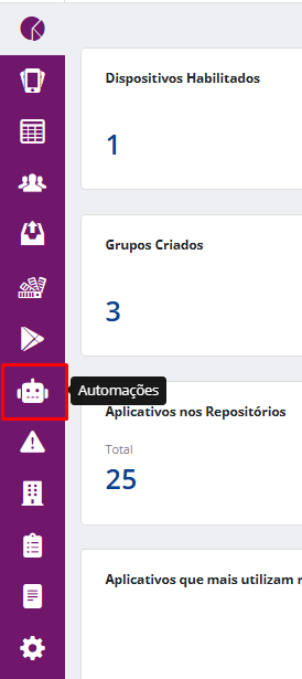 Na tela inicial do C4M, vá ao menu “Automações” conforme mostrado na imagem abaixo.