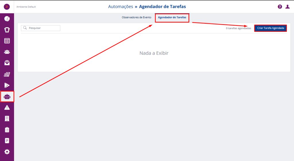 Para criar uma tarefa agendada deste tipo, vá em “Automações” conforme mostrado na imagem abaixo: