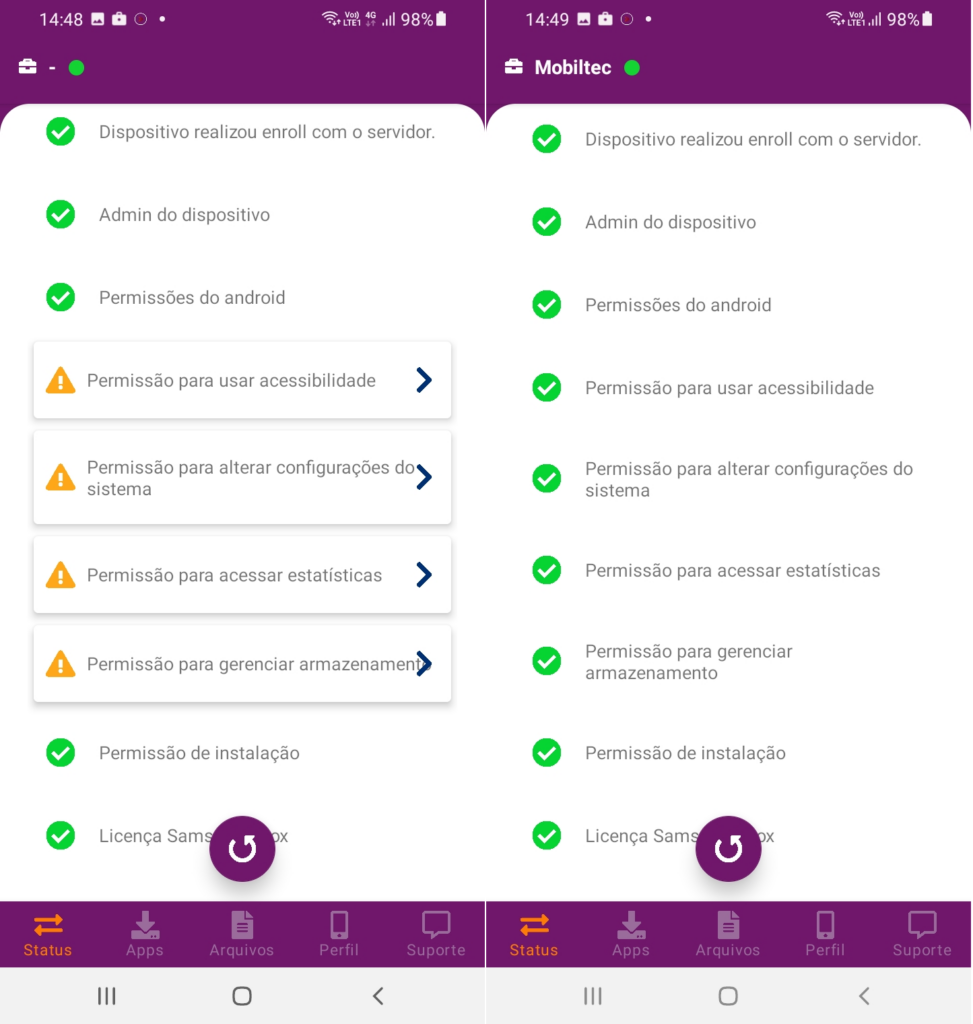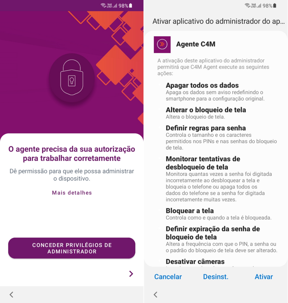 É importante frisar que após o enroll, você deve conceder todas as permissões que ainda estiverem faltando no C4M Agent. Desta maneira todos as funcionalidades poderá operar corretamente quando o dispositivo estiver nas mãos do usuário utilizador.