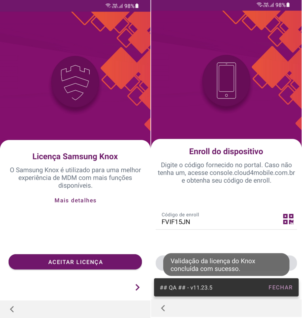 O Android Enterprise já está inserido no Android há vários anos. Sendo assim, hoje em dia é fácil fazer o enroll utilizando o QRCode já entrega todas as informações necessárias para o dispositivo iniciar o processo de inclusão no MDM.