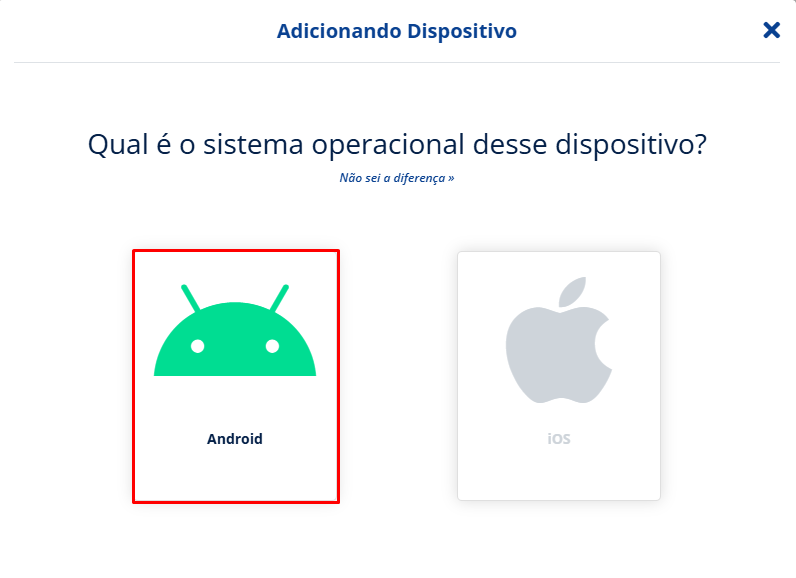 Selecione o sistema operacional do dispositivo que será inserido no C4M, neste caso “Android“. O assistente avançará após isso a próxima tela.