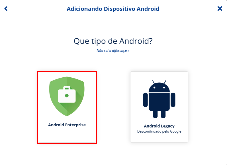 Selecione a opção “Android Enterprise“, já que é este o enroll utilizado no método AFW. Após selecionar, o assistente avançará sozinho para a próxima etapa.