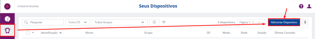 Após a tela de dispositivos carregar, observe no canto superior direito o botão “Adicionar Dispositivo“. Clique nele.