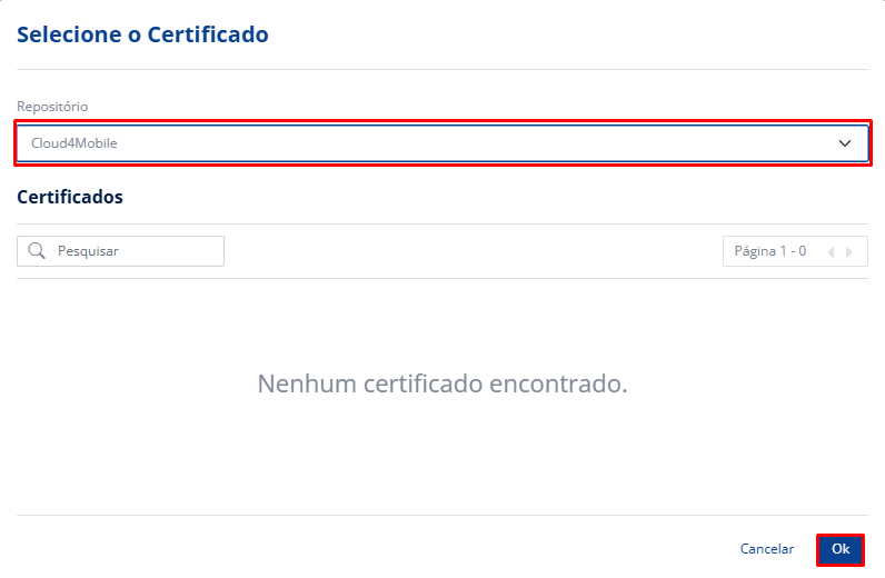 O cloud4mobile possui um repositório de Certificados Digitais. Os certificados digitais do repositório podem ser instalados nos dispositivos através de um Perfil de Instalação de Certificados (Android Enterprise).