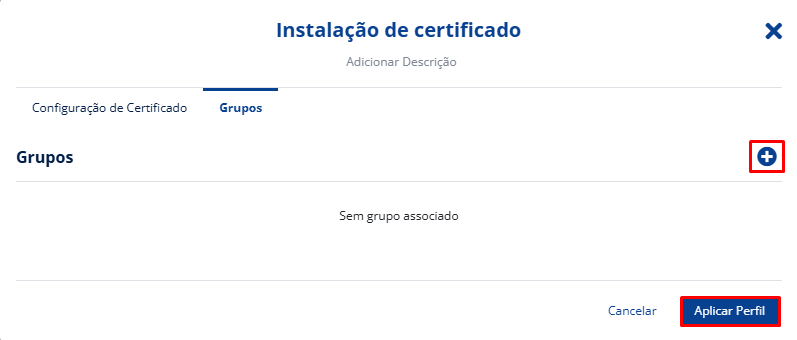 O passo final é atrelar o perfil que você recém criou a um grupo/subgrupo de dispositivos. Para isso, clique no botão de “+” e marque todos os grupos/subgrupos aonde deseja aplicar o perfil. Por fim, clique em “Aplicar Perfil“.