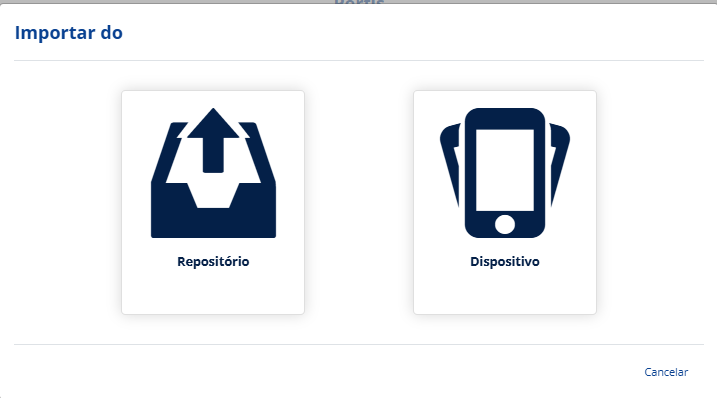 Uma nova tela irá surgir. Nela haverá duas opções “Repositório” e “Dispositivo“.
