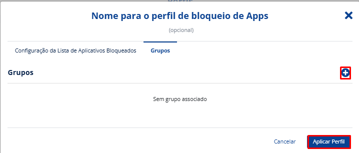 Neste momento, você pode montar a lista com os apps que deseja bloquear nos dispositivos. Há dois botões disponíveis (mostrados na tela abaixo).